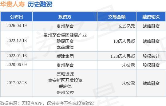 证券之星消息,根据天眼查APP于4月19日公布的信息整理,华贵人寿保险股份有限公司战略融资,融资额6.15亿元,参与投资的机构包括贵州茅台。