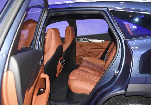 侧面造型方面,车顶带着点小溜背风格,而且营造出了悬浮式车顶,有着一定的运动气息;腰线前低后高,采用了类似贯穿式的设计,有着比较强的姿态感;轮眉和侧裙部分设计有粗壮的黑色饰板,进一步增强了力量感;轮毂则是密辐式造型,风格比较大气。